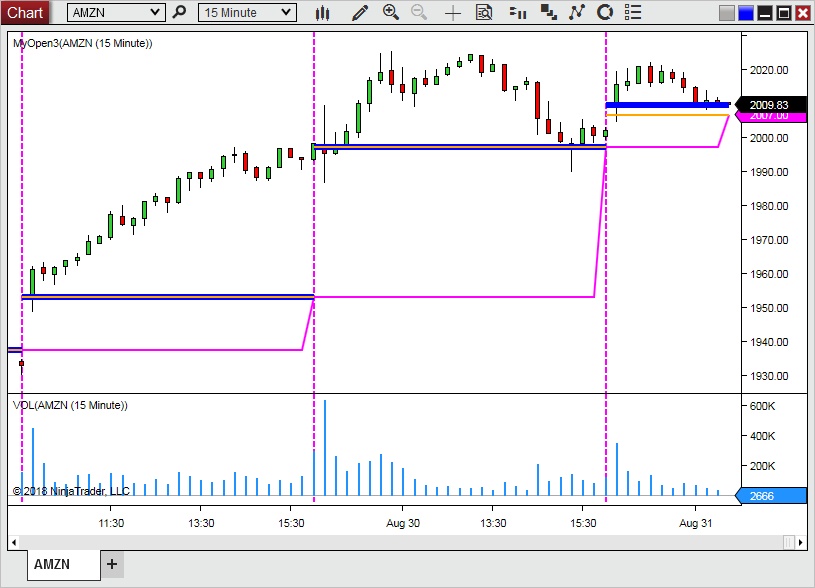 My current data provider is BarChart. There are often minor discrepancies between intraday-data and day-data. For instance on Friday (Aug 31, 2018) AMZN had the following open data: