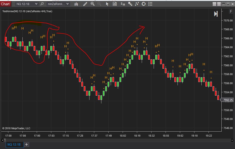 Draw.Text(this,@"t1"+CurrentBar,"H",0,High[0]+8*TickSize,Plots[0].Brush);