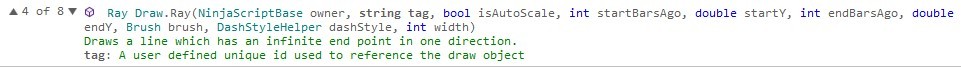 Draw.Ray(this, "rayL", 1, Low[1], 0, Low[1], Brushes.Red, DashStyleHelper.Solid);