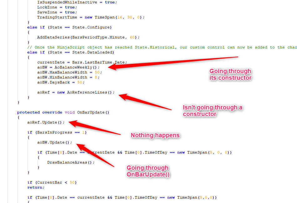 I have a custom indicator calling two custom indicators. One of them is initialized correctly while the other one is not (when I call the indicator2.Update() nothing happens). I searched the codes for a reason but couldn't find any.