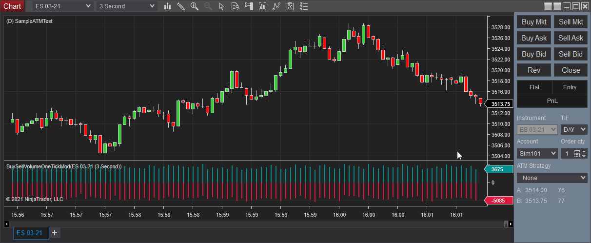 You can modify the BuySellVolume indicator that comes with the platform to visualize. Ensure Buys is built only from buys and is positive. Ensure Sells is built only from sells and is negative.