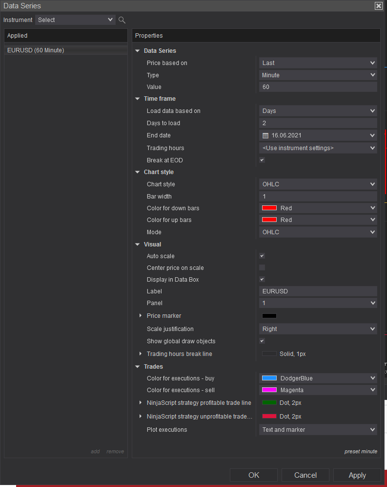 Also attached are the settings for the data series and the pivots indicator.