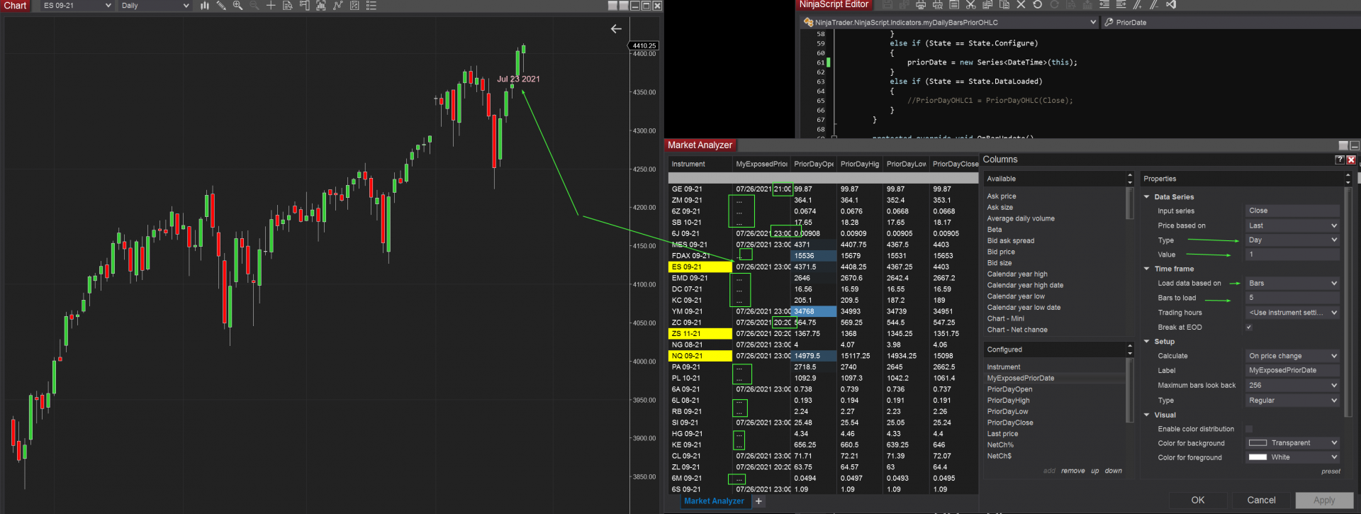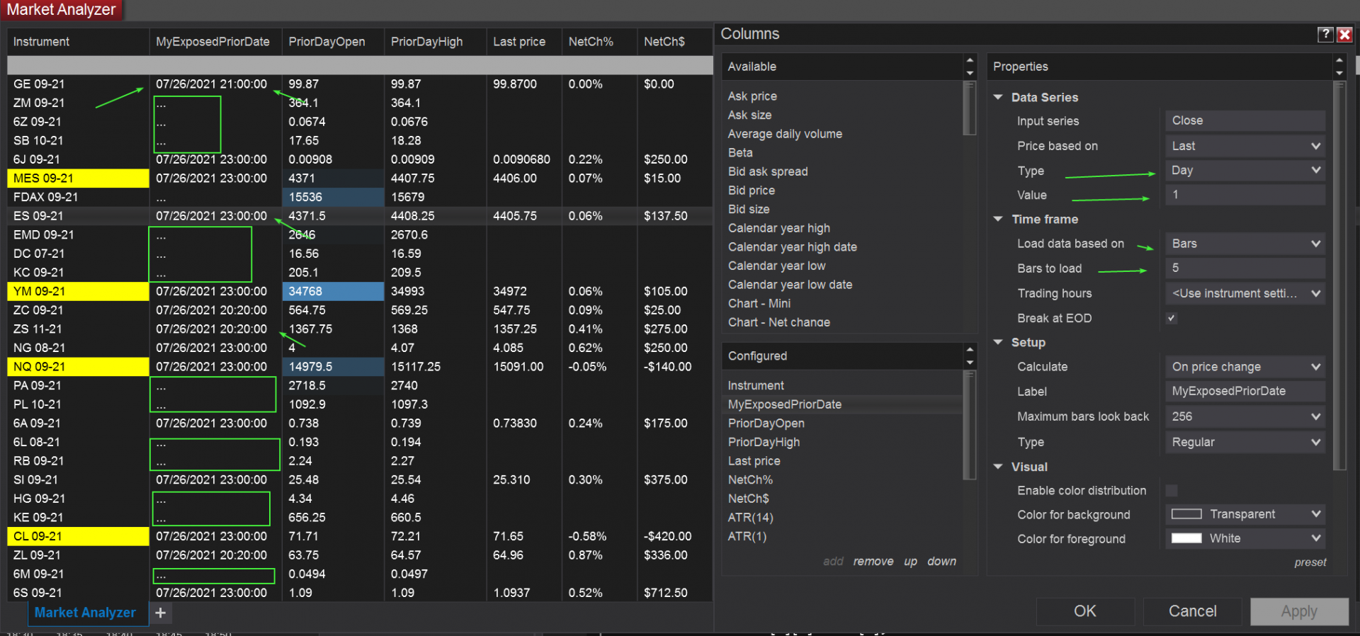 Did you mean to imply adding the # Properties priorDate code both to the indicator and the Market Analyzer Column Scripts?