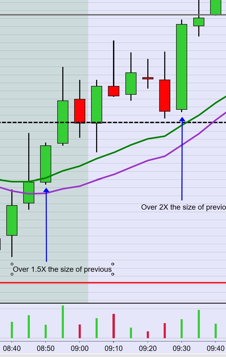 I'm trying to change the colour of a candle when it exceeds 1.5 times the size of the previous candle indicated in the image below.