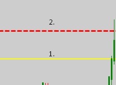 - Ctrl + V creates a horizontal, solid, yellow line with a width of 2.