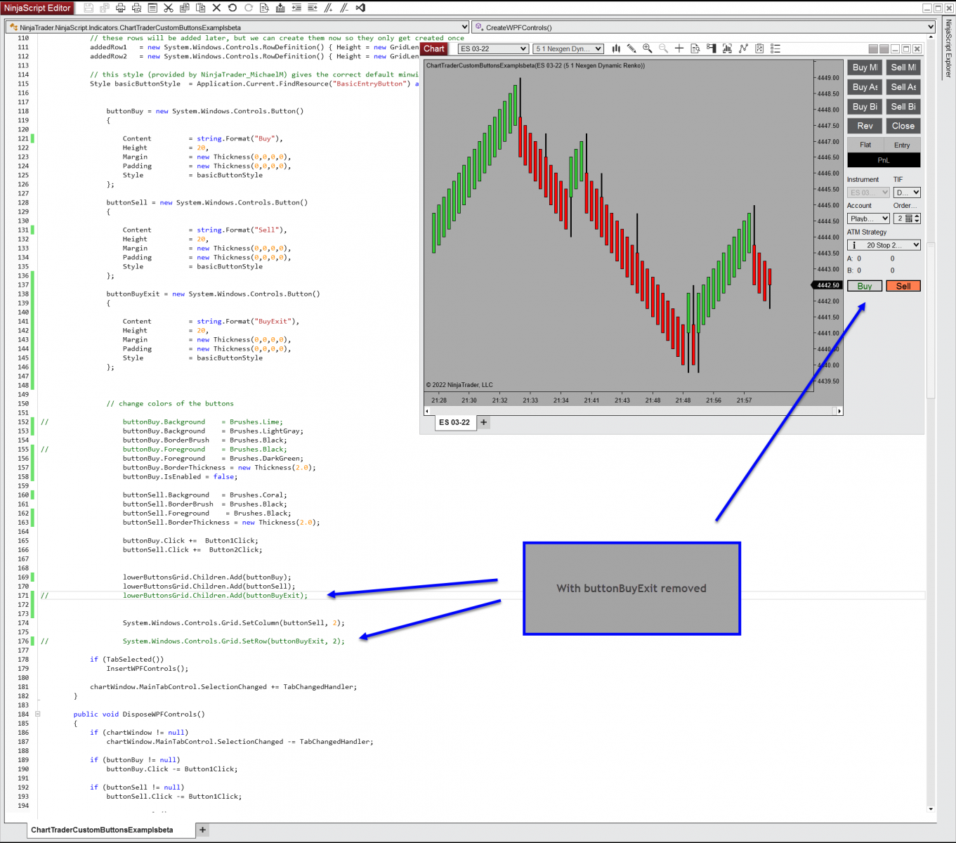 I'm using the sample code "ChartTraderCustomButtonsExample"