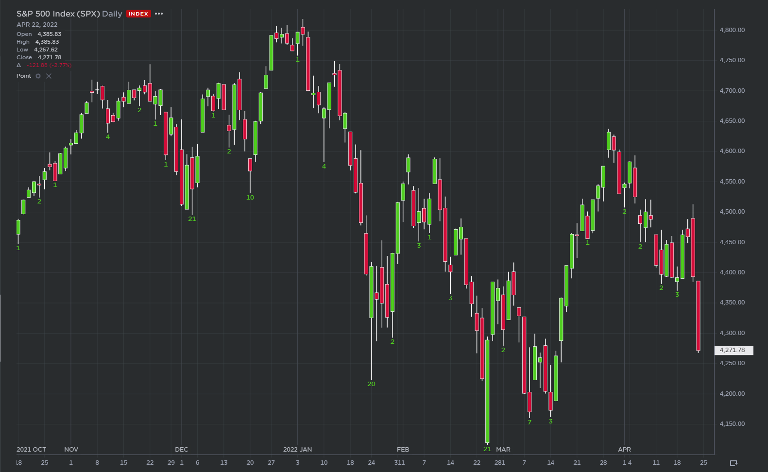 I thought I could build on that to identify Pivot Point Lows, ranging from a higher low on each side of a specific low (Level 1) to having 21 higher lows on each side of a Pivot Point Low (Level 21). You can see from the attached chart, it displays multiple Point Point Lows at various levels.