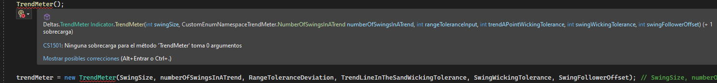 my script calls another indicator but I always get the error that there was no constructor that takes this number of arguments. Many properties of the called indicator don't have the NinjaCcriptPropertyAttribute, I fear this might be the problem. I attached a screenshot.