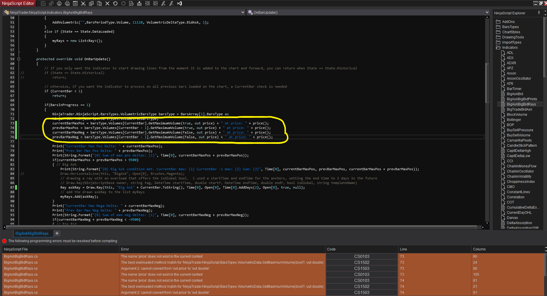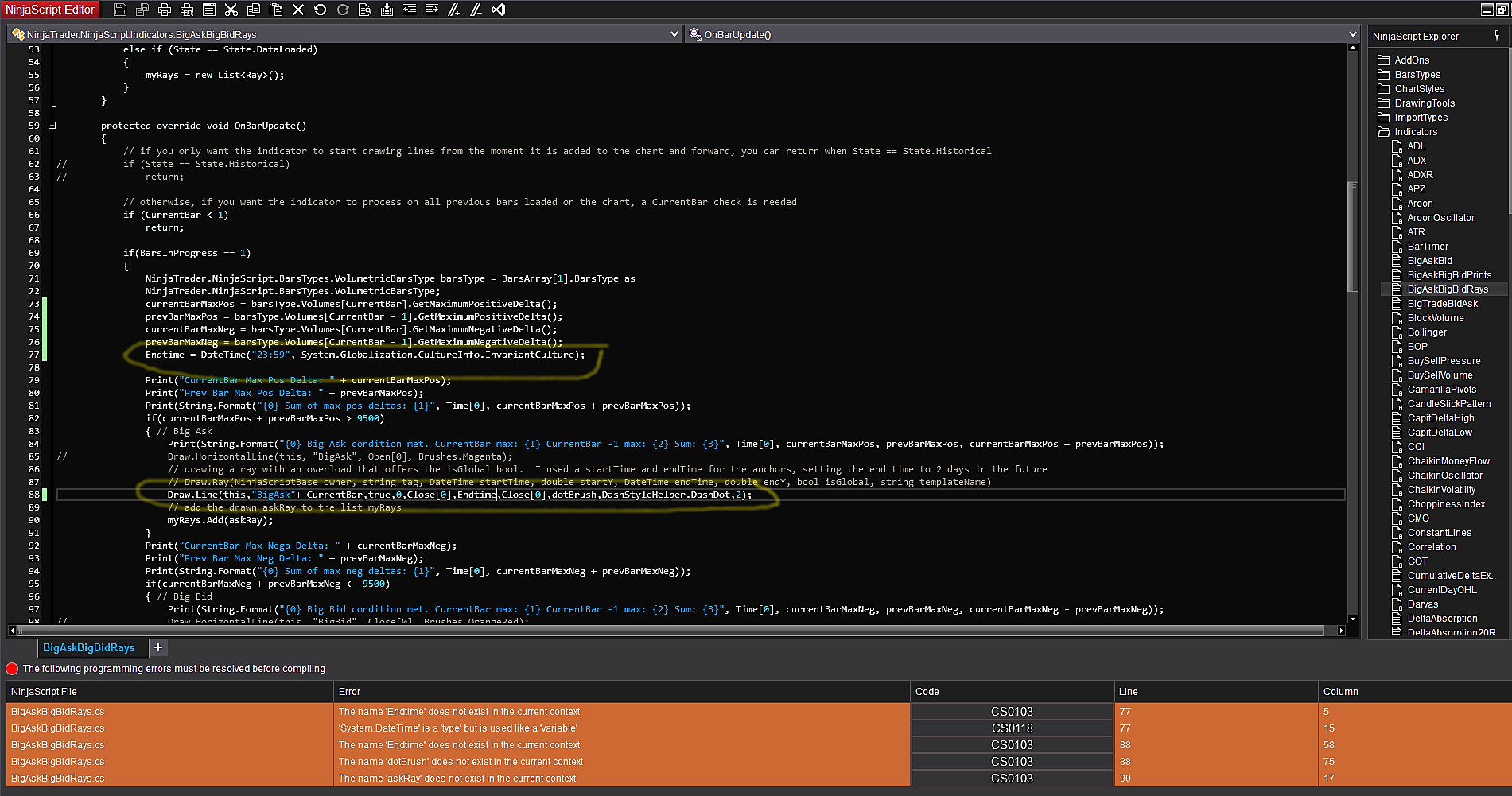 if(barsType.Volumes[CurrentBar].GetMaximumNegativeDelta() - barsType.Volumes[CurrentBar -1].GetMaximumNegativeDelta() < -8000){ // Big Bid