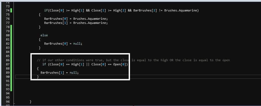// if our other conditions were true, but the close is equal to the high OR the close is equal to the open