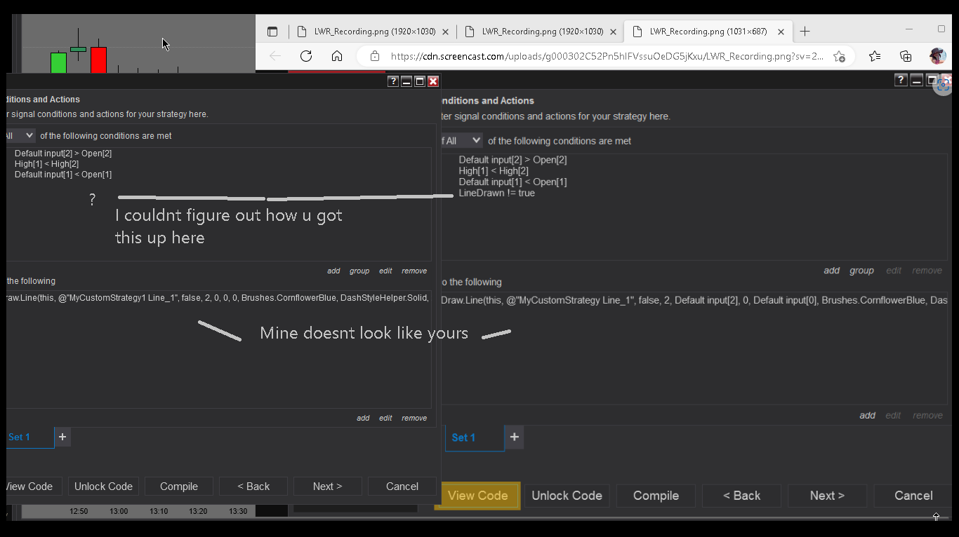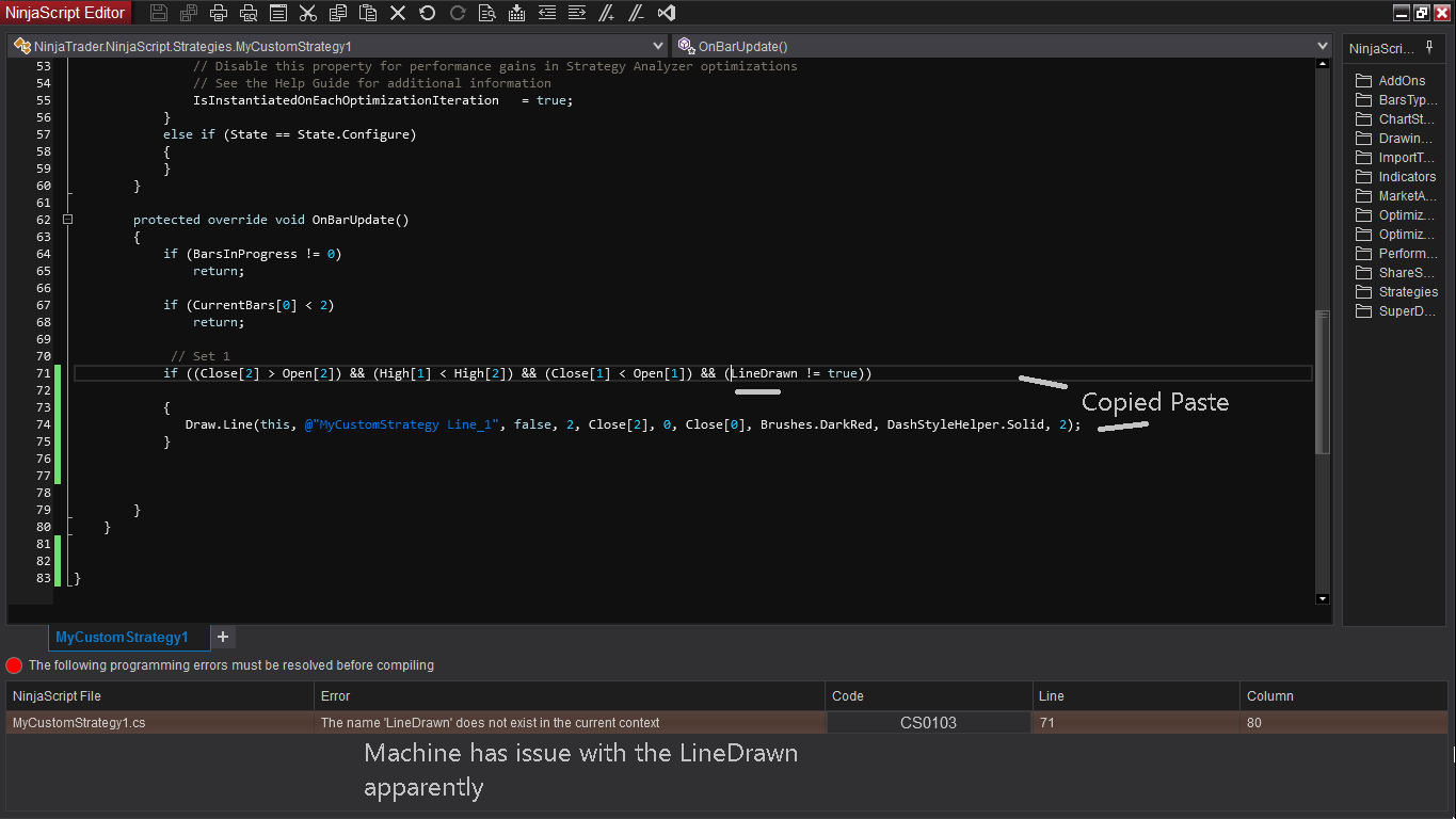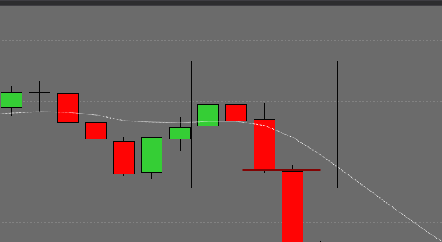 if(Close[2] > Open[2] && High[1] < High[2] && Close[1] < Open[1] && Close[0] < Open[0] && != Draw.Line)