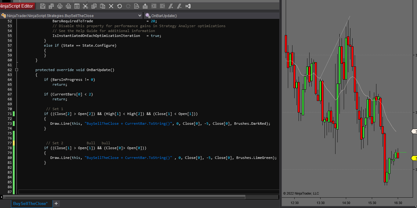 Have it draw a red line at the close of bar.