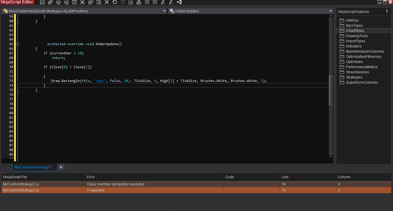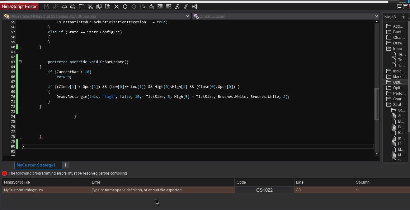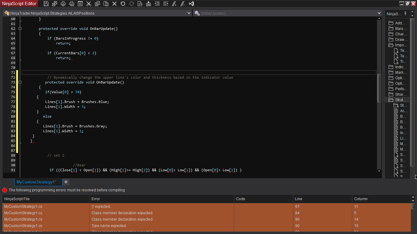 For more tips when getting started/getting more familiar with coding in NinjaScript, please see the link below: