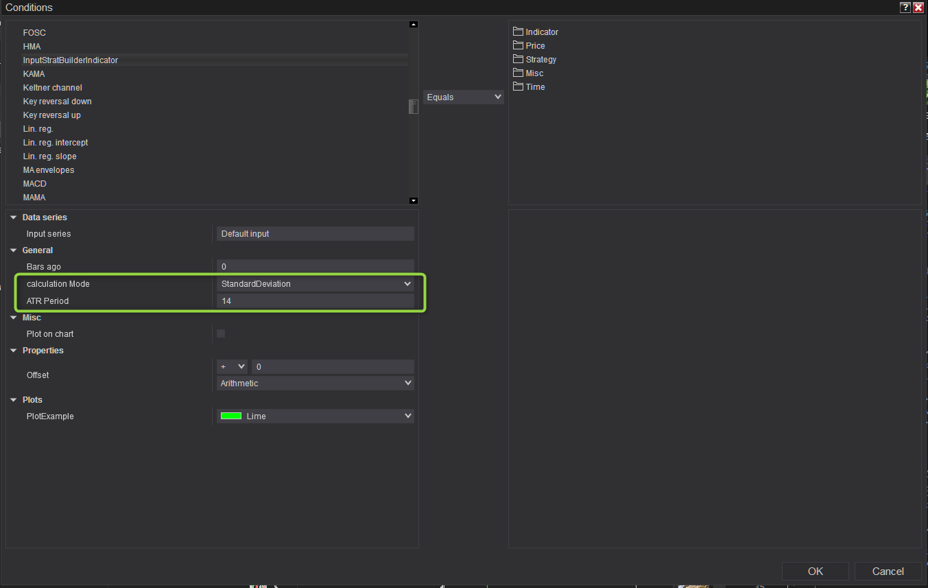 It's working properly in NT's indicator settings window, but it looks like NT's strategy builder doesn't care about it. Is there a way to hide/show some indicator input param in the strategy builder too?