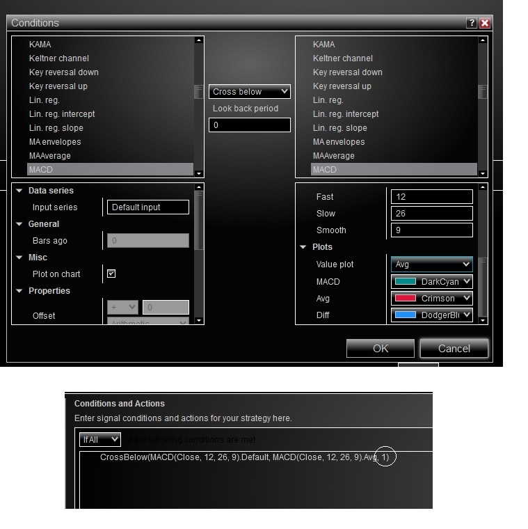 Then, in the 'Conditions and Actions' screen of the Strategy Builder you could create a CrossAbove/CrossBelow condition and set the 'Lookback period' property to 1.