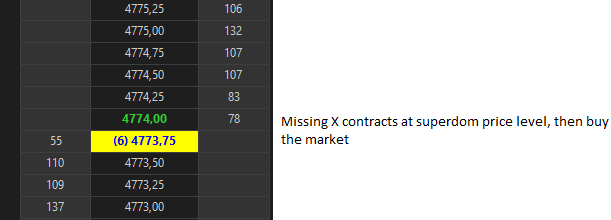 How to make an indicator using ninja script that when there are X contracts missing for a price level then executes a market buy order.Tags: None