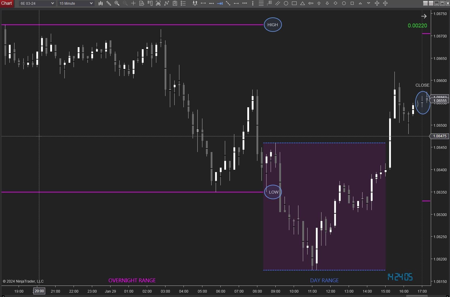 Or, simply if I define an OVERNIGHT RANGE on an instrument let's say from 6PM EST time (GMT-5) to 6AM EST and the DAY RANGE from 6AM EST to 3PM EST: