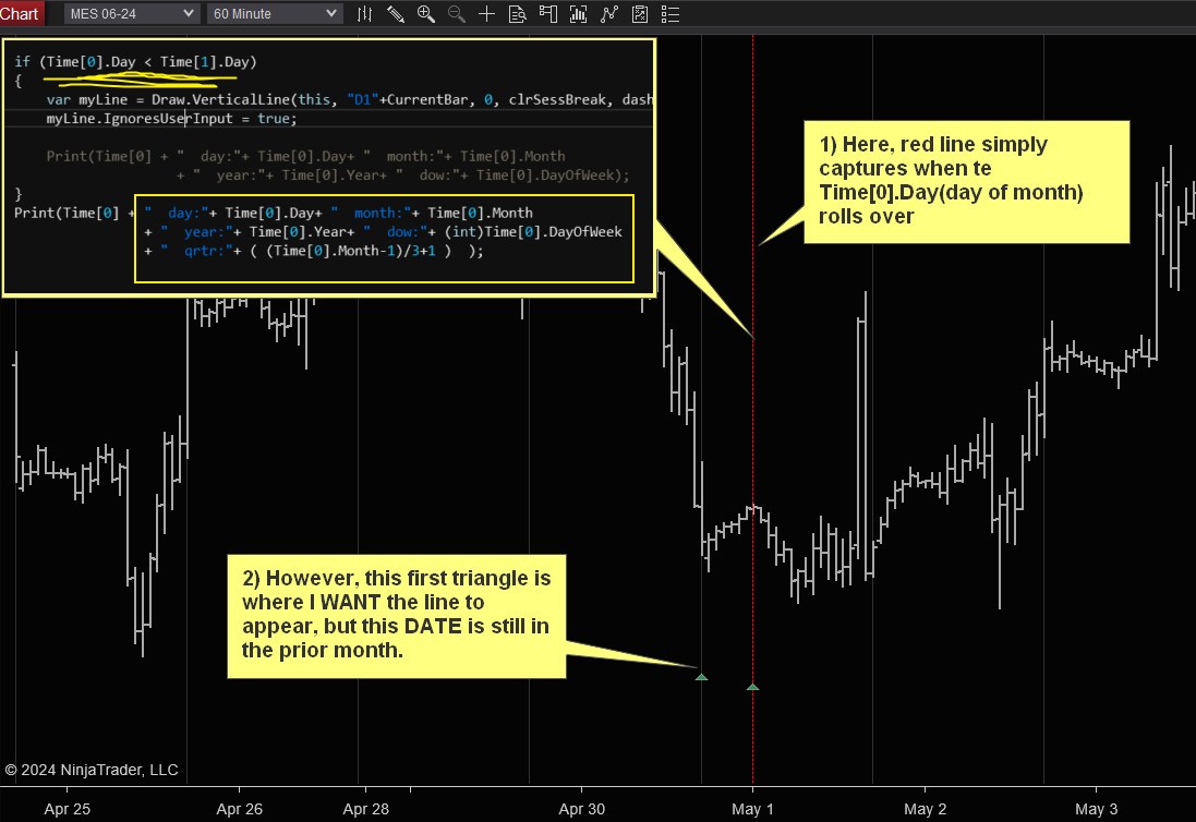 And then comparing the current bar, to the previous bar, and waiting for a change will yield the CALENDAR date of change.