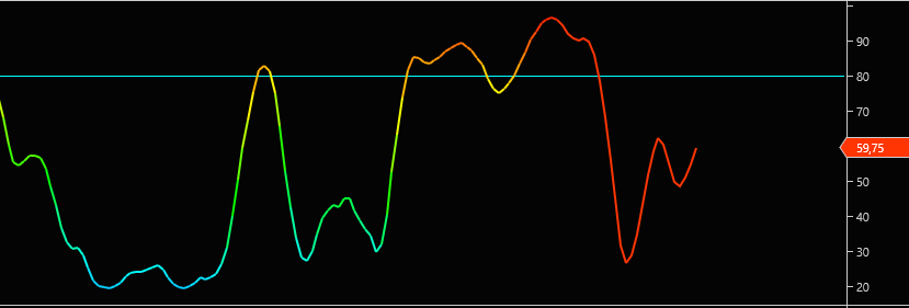 I have a custom NinjaTrader 8 indicator that uses a color spectrum to color a plot according to specific levels on the indicator panel. The levels and corresponding RGB colors are as follows: