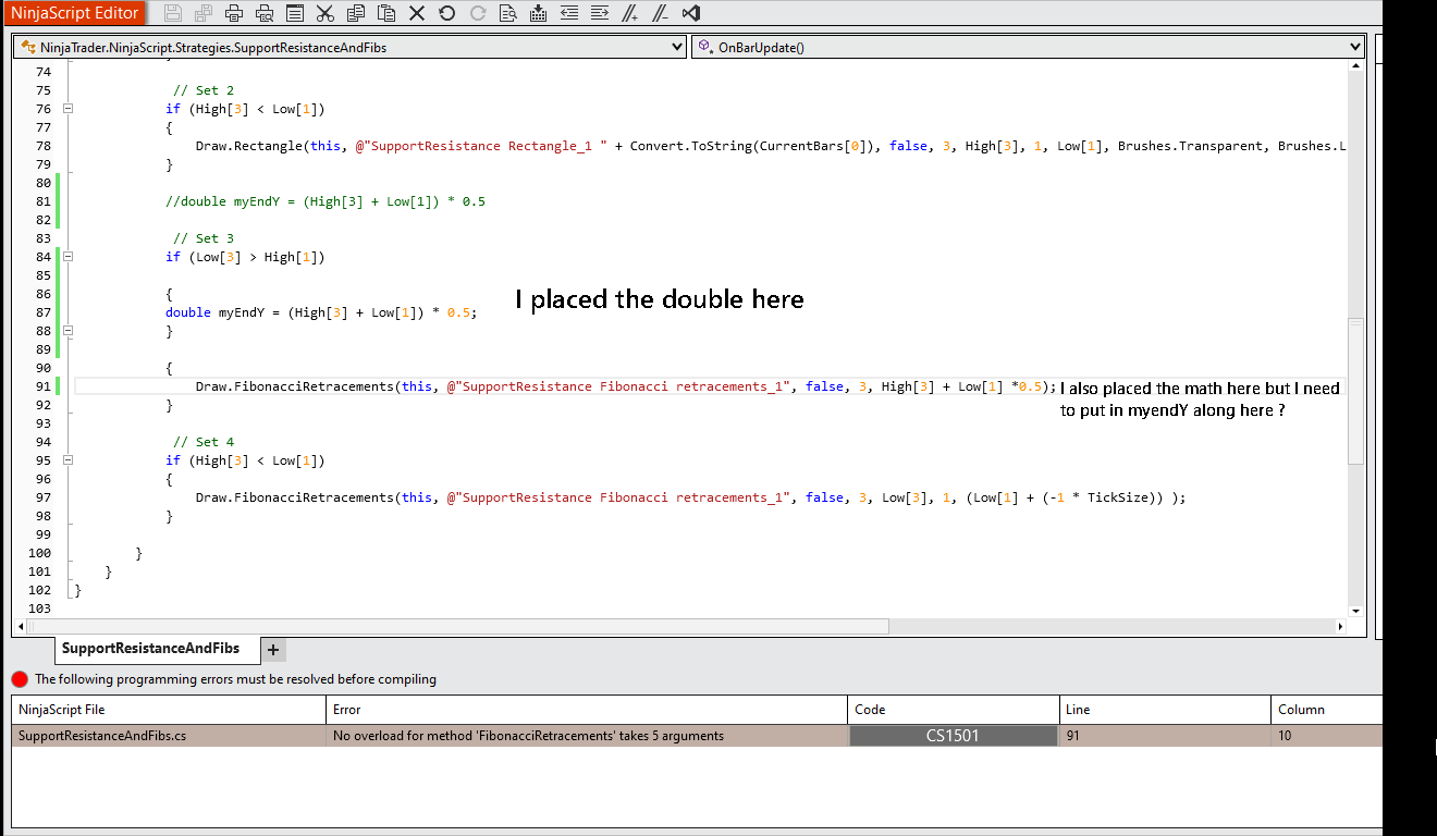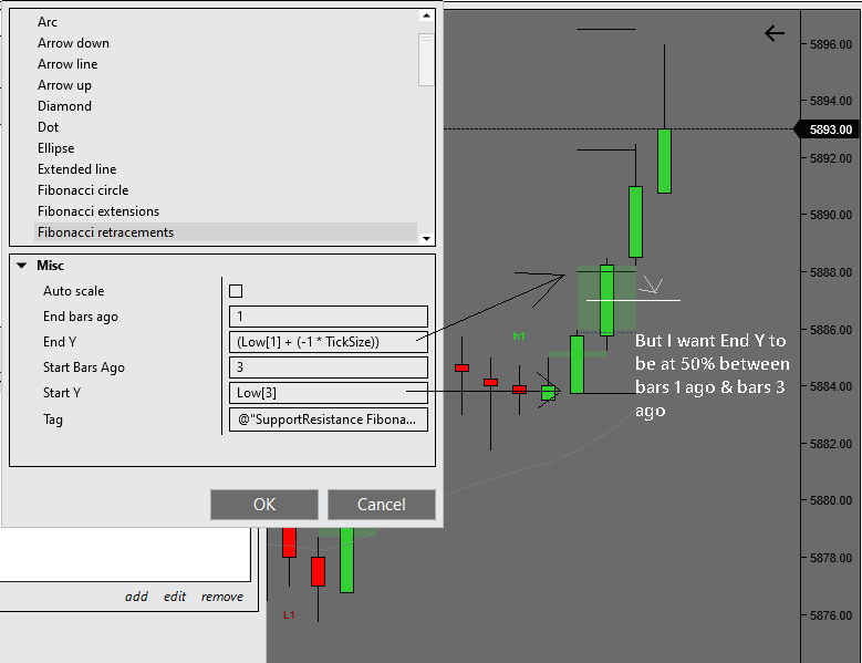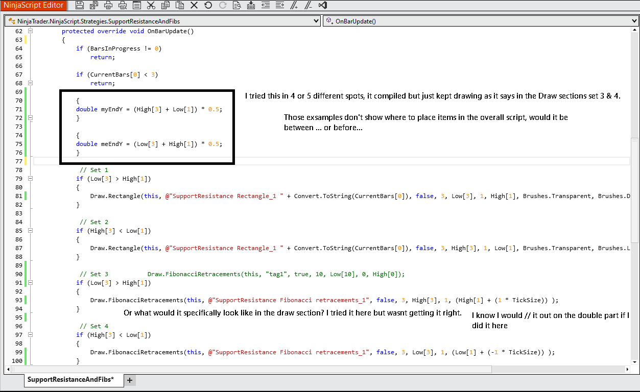 I made a rectangle tool to highlight this gap in my first set, the 2nd set is the fib tool. For now I only have End Y at -1 tick below bar 1, which is wrong but I started there.