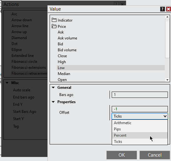 I see the percent box for one bar be it whatever bar but not two bars, for between them. I probably have to unlock the code to do this?