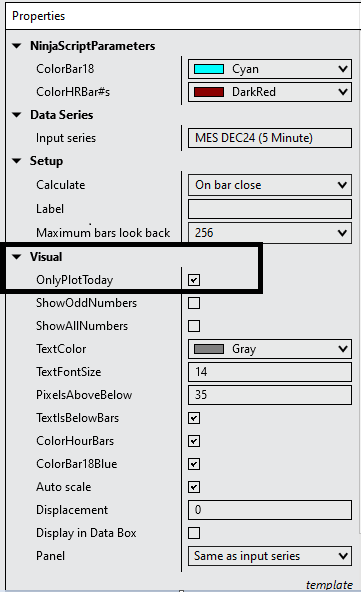 I'm going to over the weekend take that BarCounterThree, make a copy then start removing various parts compiling it along the way, until I have mostly the PlotTodayOnly left then begin to add one piece at a time from my other script into it. Essentially build my script into that one, because I can't bring 'plot today only' into it on the front end, I''ll go the back way. Try at least.