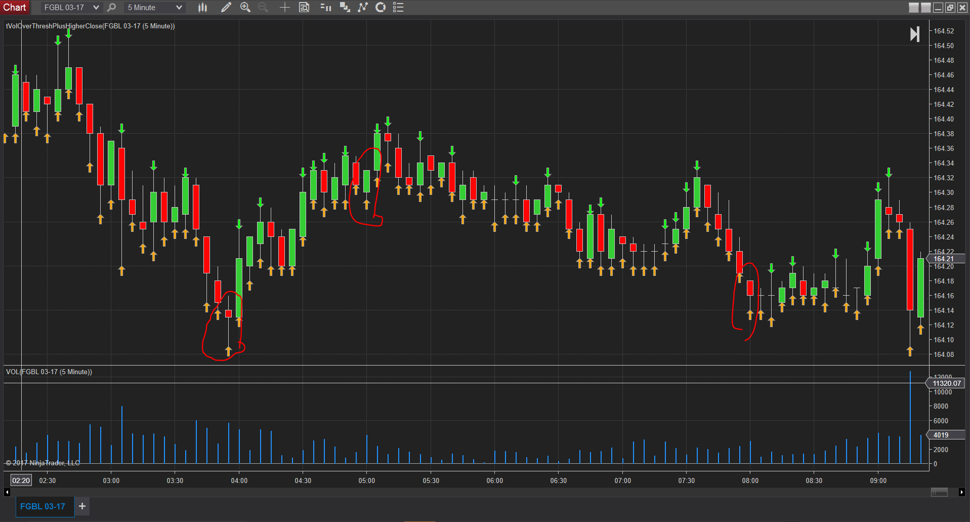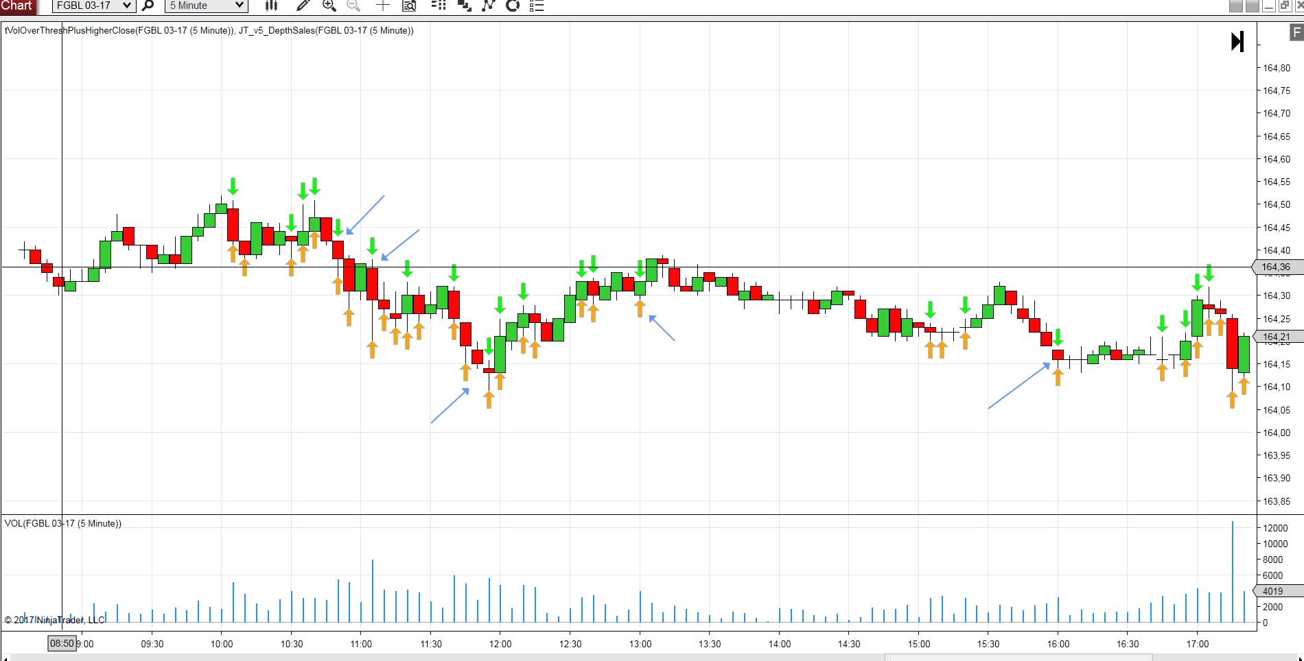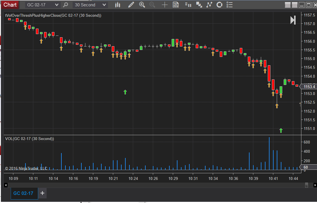 I have built a strategy which will draw an arrow and assign the Close of that bar to a data series named higherHighsVolOverX, for any bar who’s volume is above user defined volume level I called xVolume, and whos bar also has a higher high then the last bar.