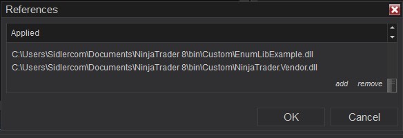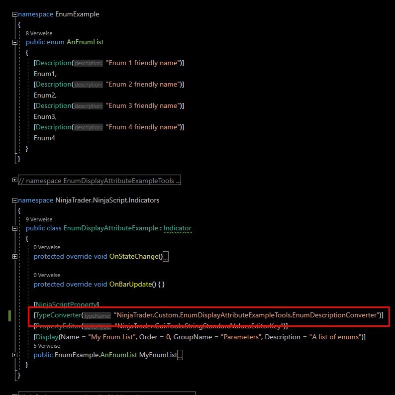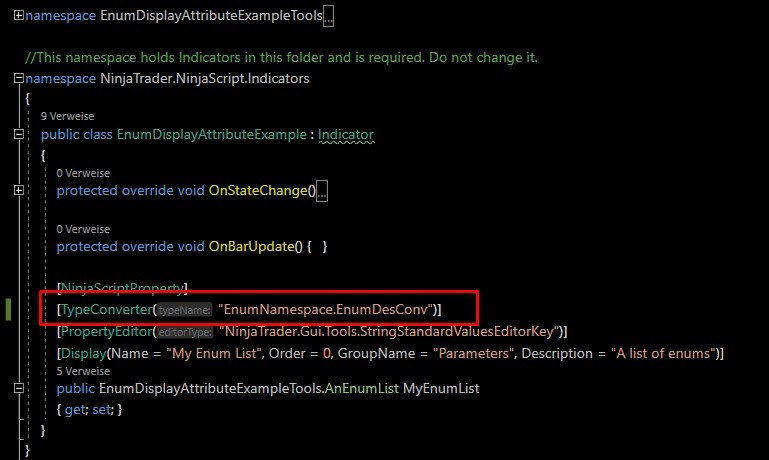 Hi _Jesse, you misunderstood me! I want to leave the indicator file "EnumDisplayAttributeExample" in the indicator directory. I want to create the "EnumDescriptionConverter " outside NT and NOT import it via import process, but only copy it into the /bin/custom directory and reference it.