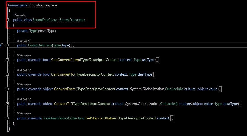 Hello, I tried to put the TypeConverter into a file (.dll) as a kind of extension and include it via Reference. There are no errors, but the TypeConverter is not used. How can I write the TypeConverter into a custom file and use it via Reference?