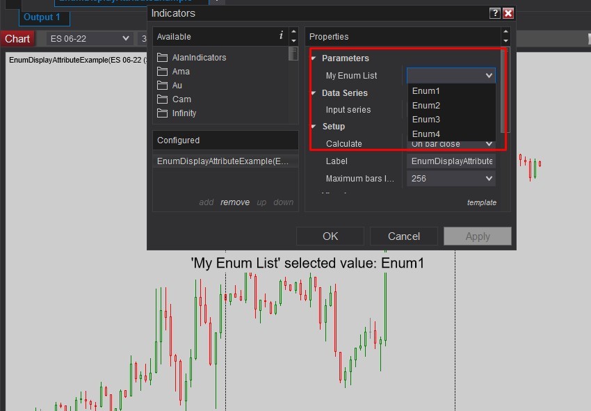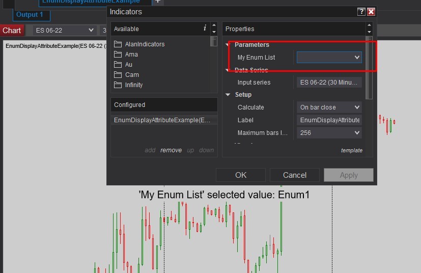 In what you previously provided you have EnumDisplayAttributeExample Indicator. Inside that indicator you had: