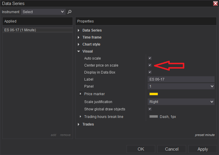 The code centers the chart within the chart window so that the last price is at y/2 of the chart.