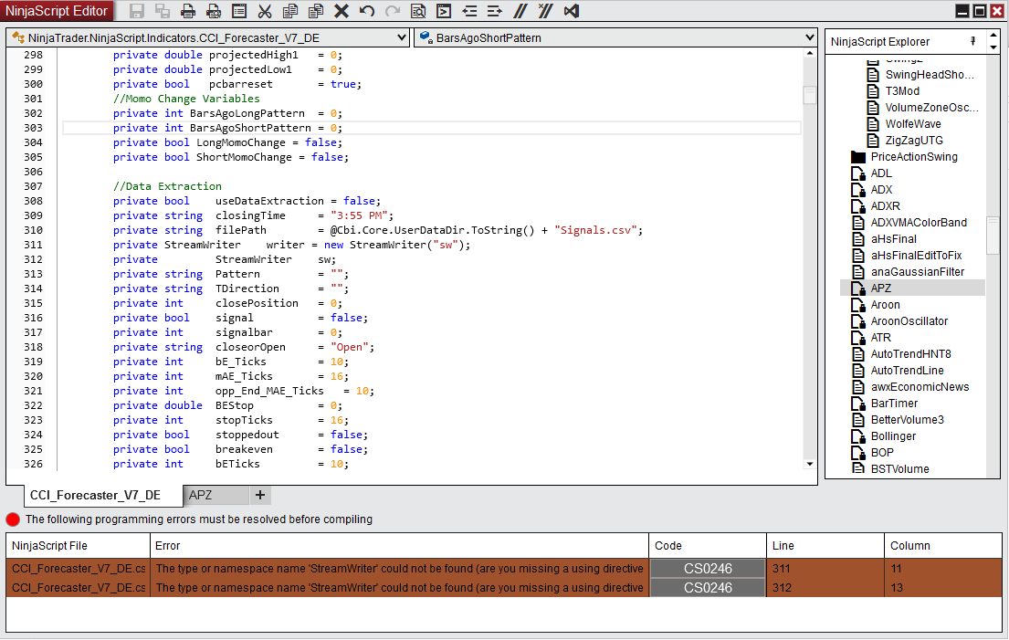 I am converting an indicator that makes use of StreamWriter.dll. I receive error # CS0246 that basically tells me StreamWriter dll is not on the list of Refrences for NT8. Please see errors for lines 311 and 312 in the attached screenshot.