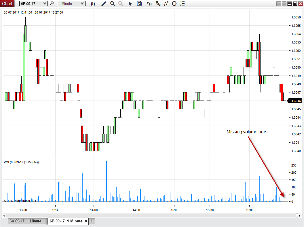 Add a new Tab, 1 minute data different contract (I used 6B 09-17)