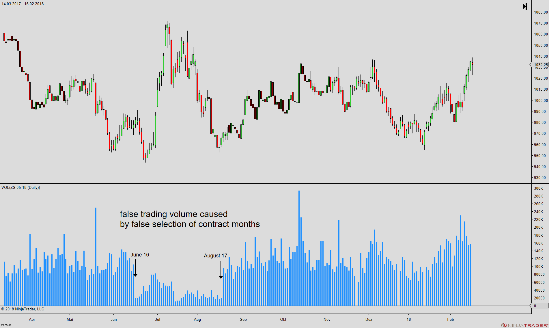 Directly switching from the July to the November contract would fix the problem of false volume, as I have already shown in my previous post. Just look at the left chart with the big hole in it, which is caused by the August and September contracts.