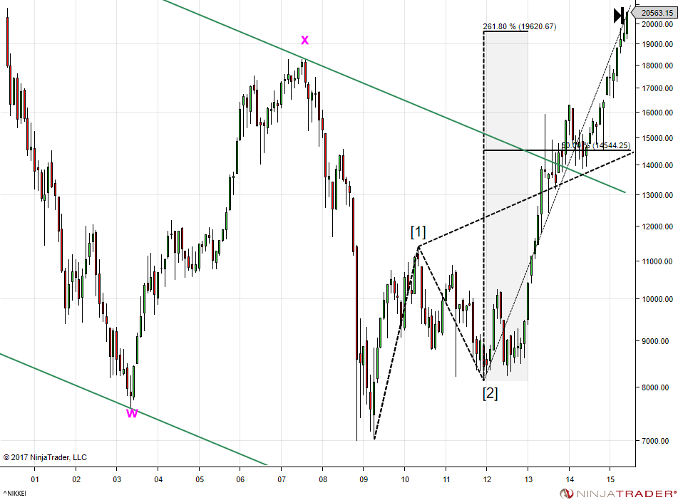 The second chart is Nikkei weekly from December 2010. Notice labels w and x in magenta colour displayed even though they are out of the dates range.