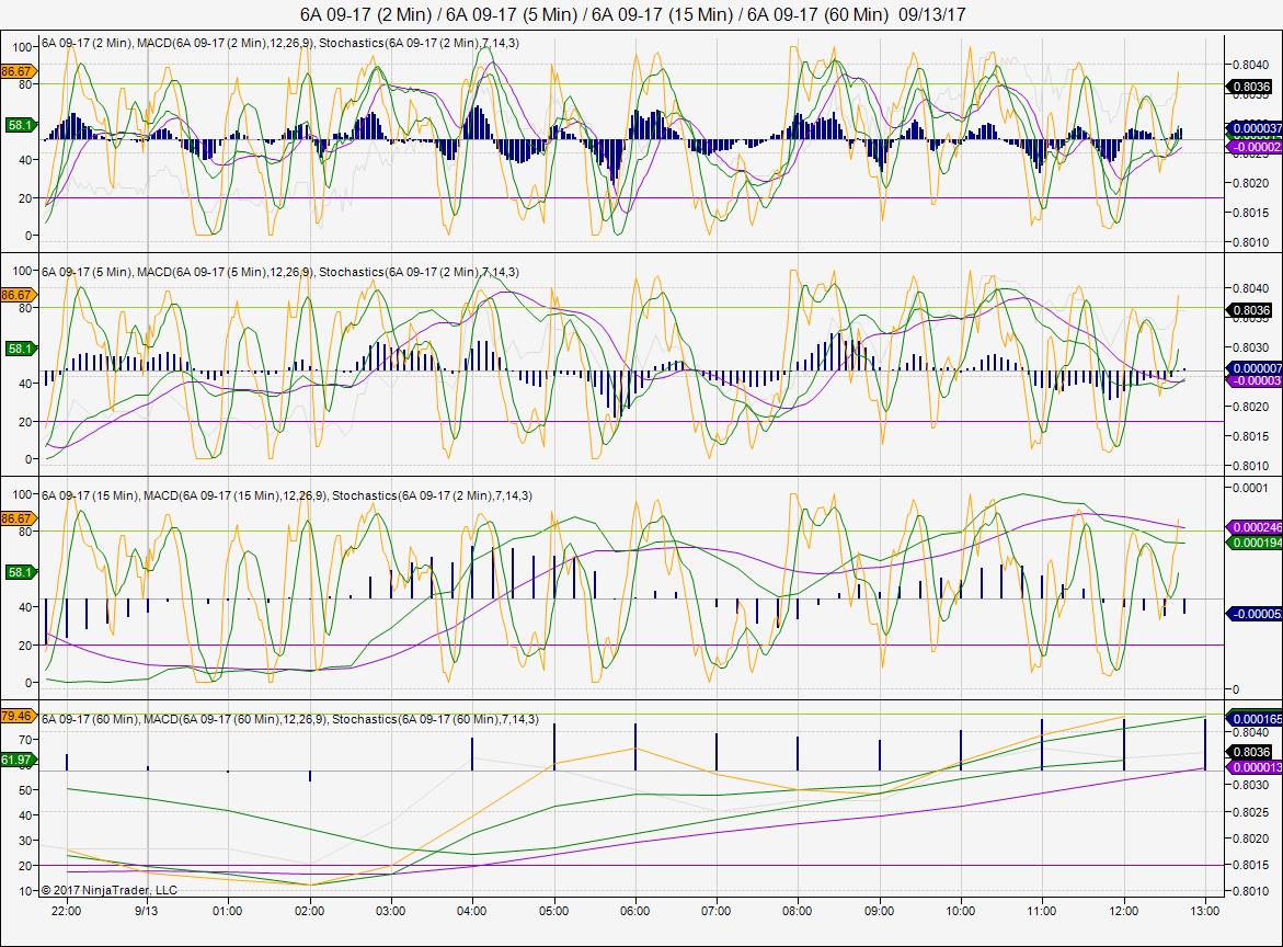 So I am wanting to have a MACD and Stochastics indicator on four different timeframes (2 minute, 5 minute, 15 minute and 60 minute).