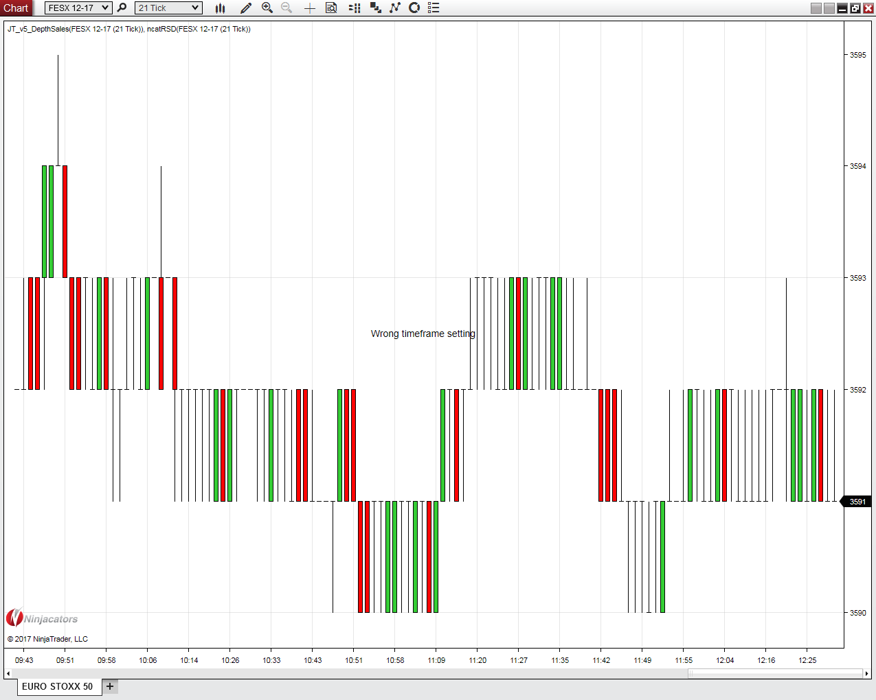 When I change from time to tick-, range- or volumechart, there is shown in the middle of the chart: "Wrong timeframe setting". But the time and point axes seem to be working correctly (FESX 12-17), what's wrong here? I use "Ninja Rader Continuum" Demo for connection.Tags: None