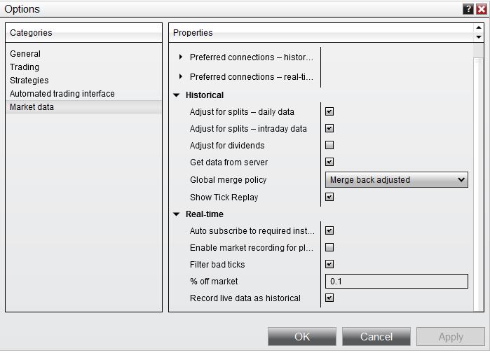 I have looked at the Options and changed the filter bad tick % but nothing changes.