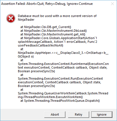 So I uninstalled the newest version of NT8 and installed the previous version that I have, version 8.0.9.0... and now I'm presented with more error messages and NinjaTrader 8 will not even launch for me.