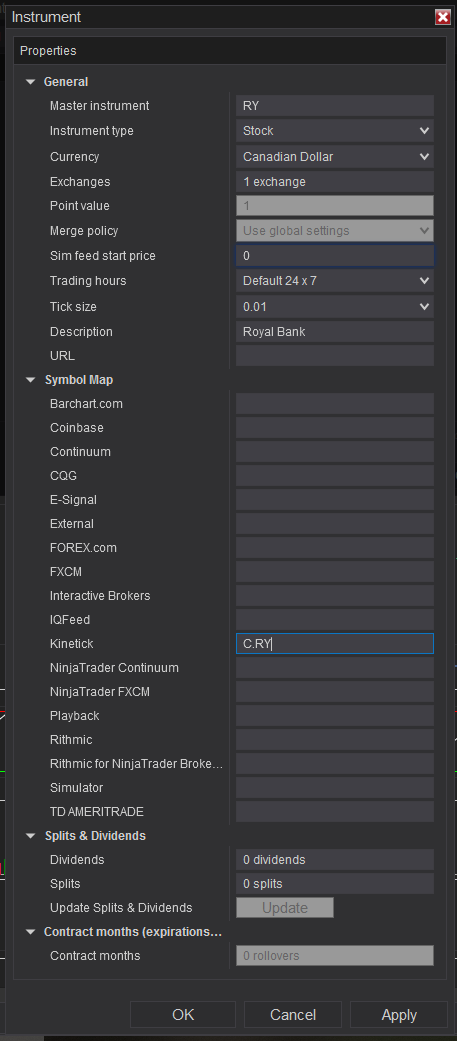 I wanted to view Canadian stocks in Ninjatrader using Kinetick. Not sure what I'm doing wrong when adding the instrument. Can anyone give me some tips? I followed the instructions from Kinetick: