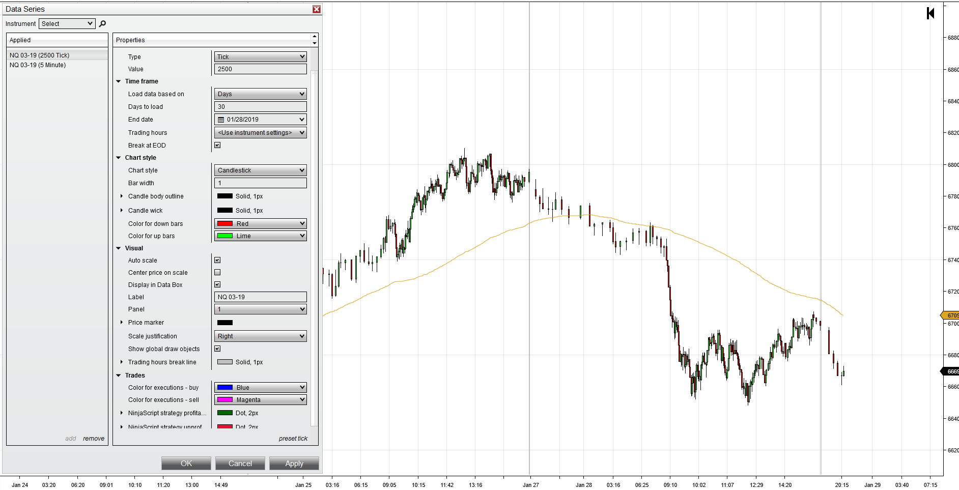 If not would it be possible to add a 5 minute chart and a 2500 tick chart to the same screen, one on top of the other? I tried this method and the 2500 tick bars are incorrect do I need to change something else to make them correct?