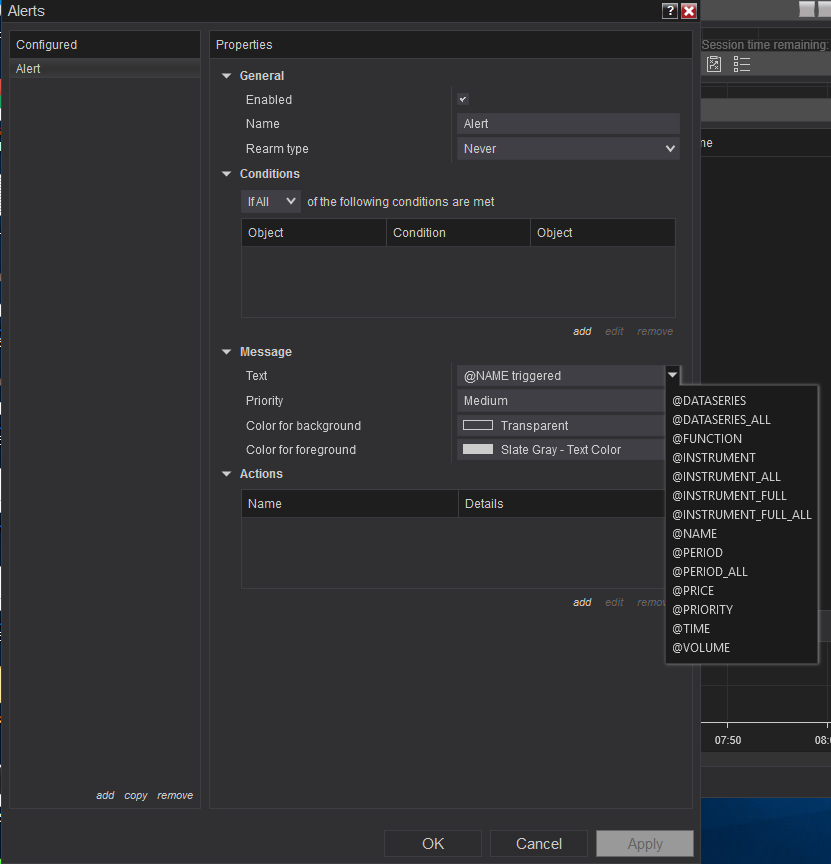 Like chart Alerts though, in the Alert() method you can construct the text of the message to provide further information available to you through Ninjasctipt methods and properties to help identify any way you wish.