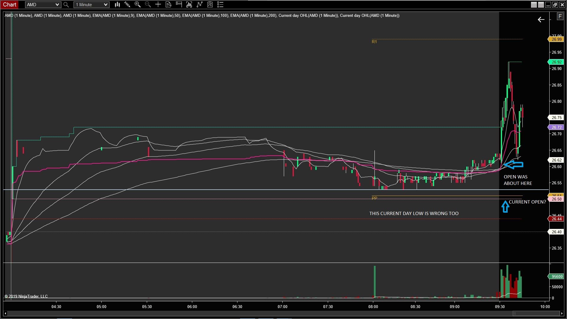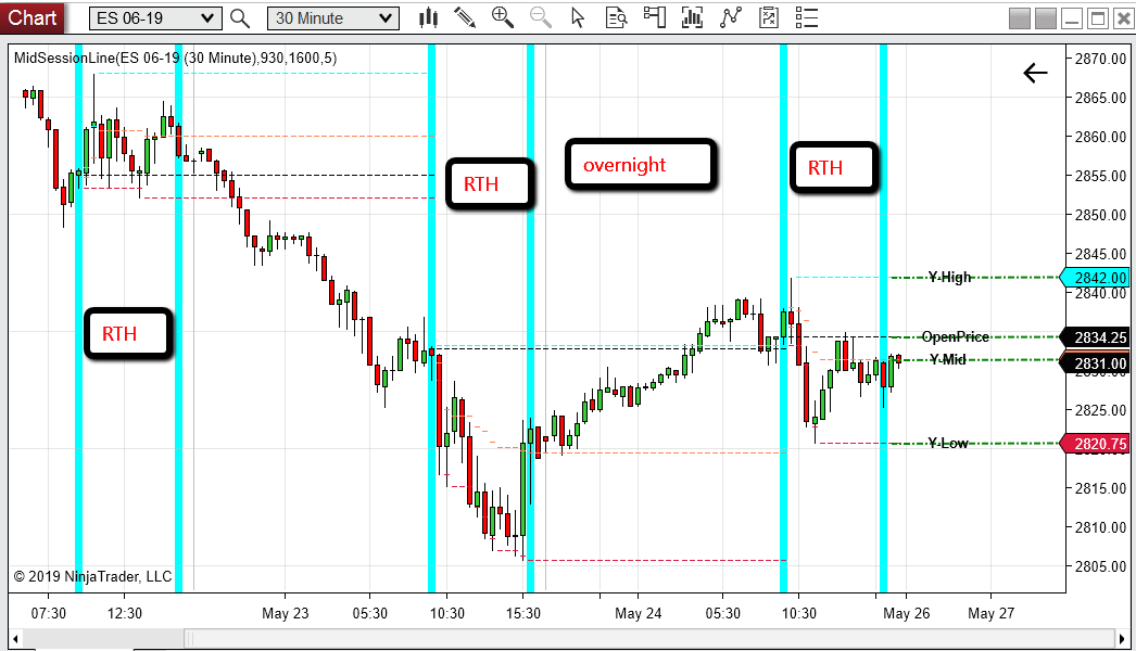 I coded this one it has start time of regular hour and start time of pre market hour for op, H, L and mid. You may want to put it on 30m chart to check out its accuracy first.Originally posted by Irukandji View PostTe problem now is this Current Day OHL indicator - I can't get it show different levels for pre-makret and RTH.