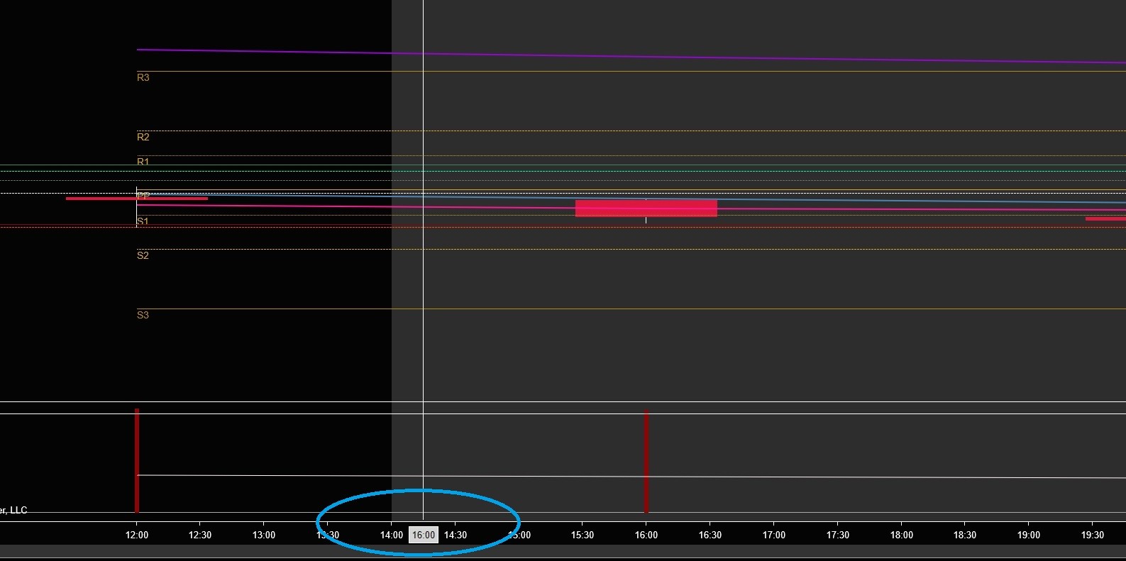 As we've discussed in another thread and via email, the cross hair time stamp is locked to the data series. The cross hair will only show times for the data series you have applied to your chart. In this scenario, you're hovering in the gap between two bars, but slightly closer to the bar on the right than on the left. Your cross hair is showing you the closing time of the bar to the right. This is expected.