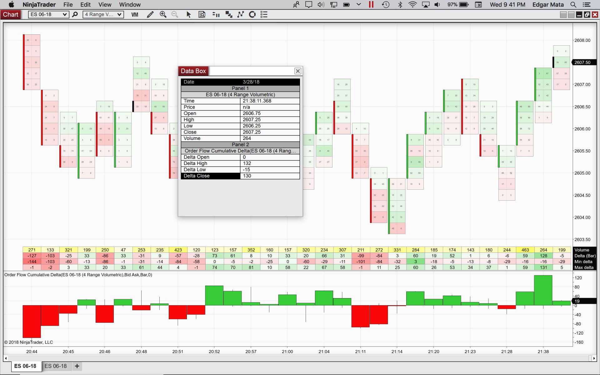Please notice the 21:38 bar. The Delta (Bar), Min delta and Max delta statistics on the chart do not match the Delta Close, Delta Low, and Delta High of the Cumulative Delta indicator. Please refer to other bars, visually you can tell they do not match. I am currently using NinjaTrader 8.0.13.0.