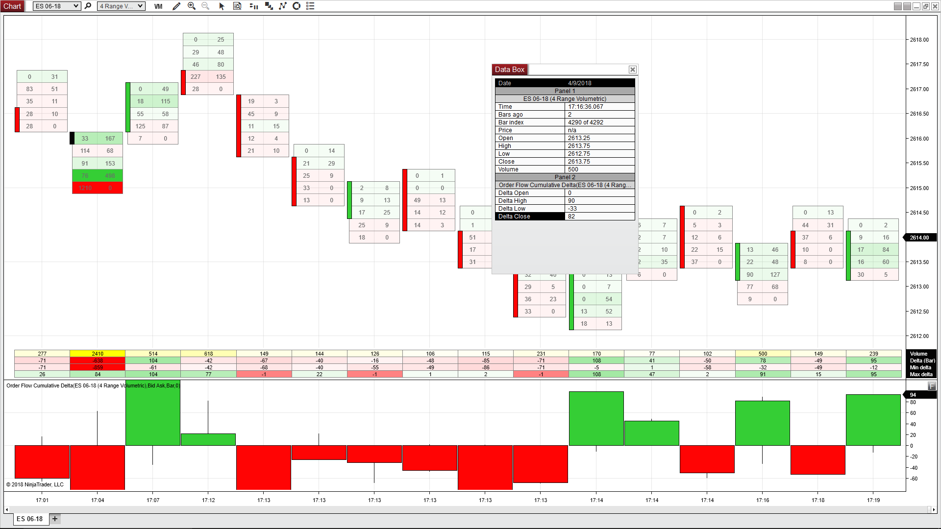 Please see my screen shot. The bar at 17:16 is shown on the data box. The period for the Cumulative Delta indicator is set for "Bar". Why do the delta, min delta, and max delta not match the value for the Cumulative Delta indicator? Am I misreading this indicator? I assume that these values should match. I've noticed other bars is this data don't match as well. I've only shown one at this point. As the data continues to accumulate, this indicator seems unreliable as the error compounds.Tags: None