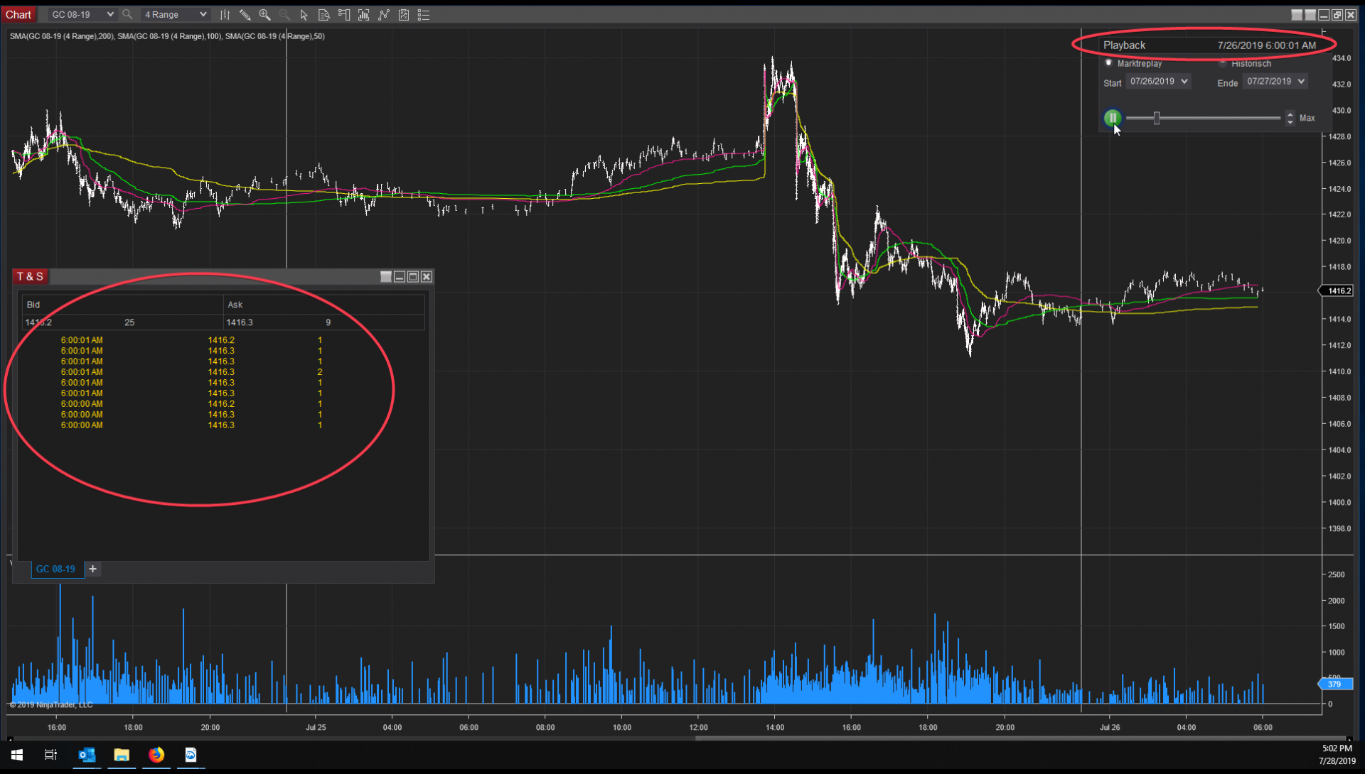 - I connected to "Playback Connection" and started the Market Replay.