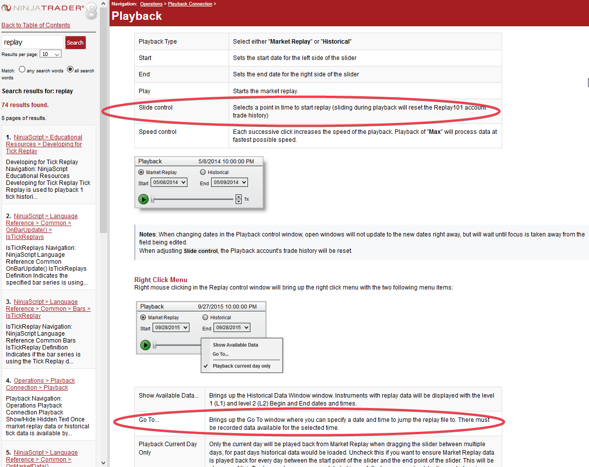- One main purpose of a playback functionality in my eyes is to jump to different points in time in order to replay specific market situations, maybe because I traded there or would have traded. Any idea how I can manage to perform this purpose without using the GoTo function?