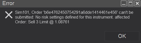 Glad to assist. To resolve this, either the Risk template must be removed, or you may add a definition in the risk template for the instrument being traded.