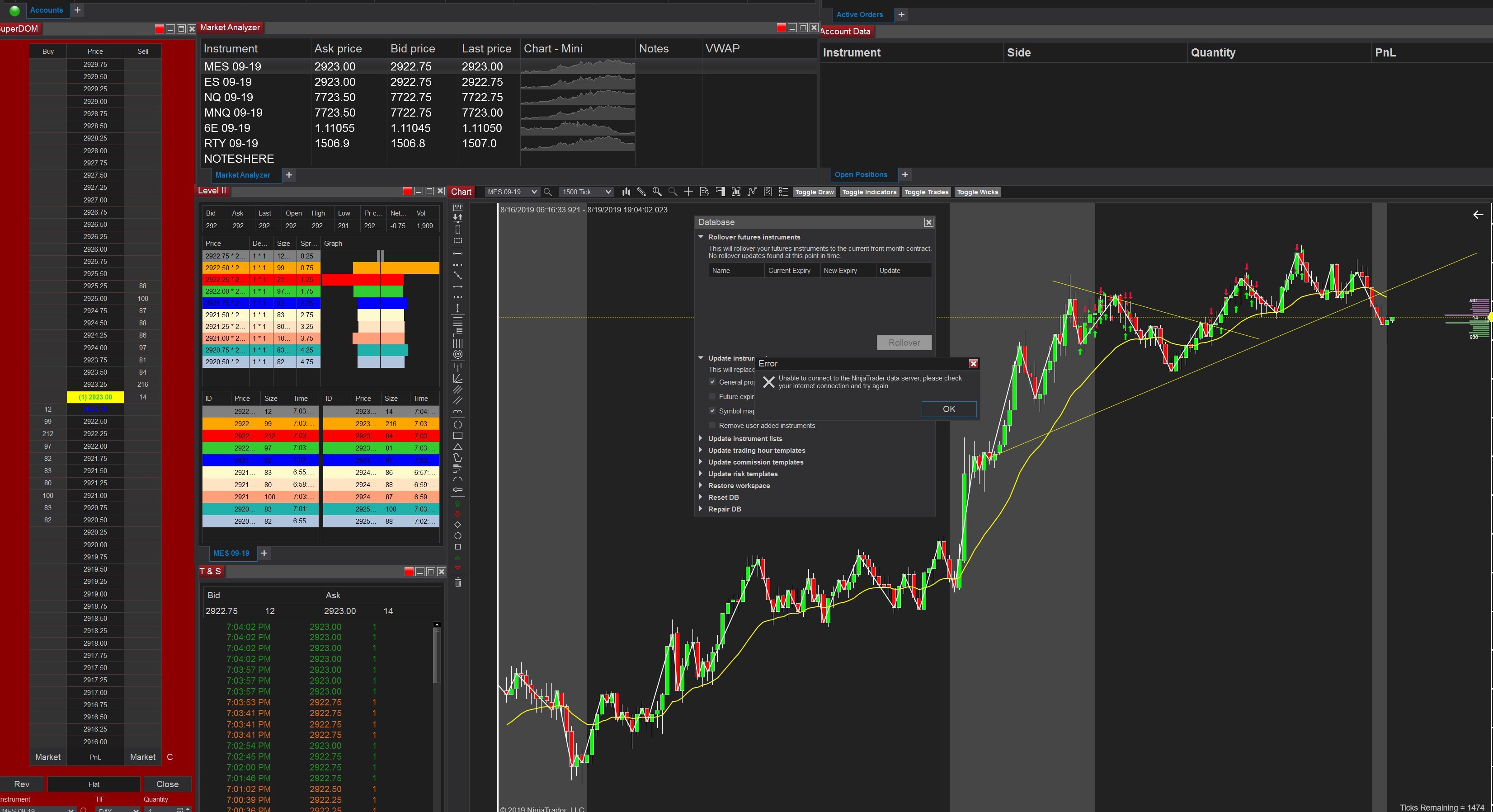 #Newtrader101 - FYI aside from your technical problems, re: your expressed desire "I want to ensure that the instruments I will be trading are going to automatically rollover and be updated.", you may want to be aware that there is no feature in the stock platform for instruments to automatically rollover. There is some functionality for 'pushed' notifications to tell you of impending rollovers but this is limited to the main instruments e.g. US Indices etc i.e. the onus is on you to know when and manually roll . Furthermore rollover is by date only, there is no volume-based solution, should you want it.